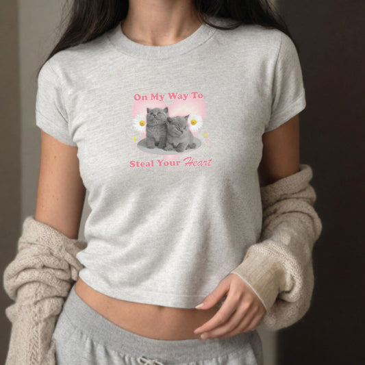 Cute Y2K "On My Way To Steal Your Heart" 2000s Kitty Baby Tee Shirt
