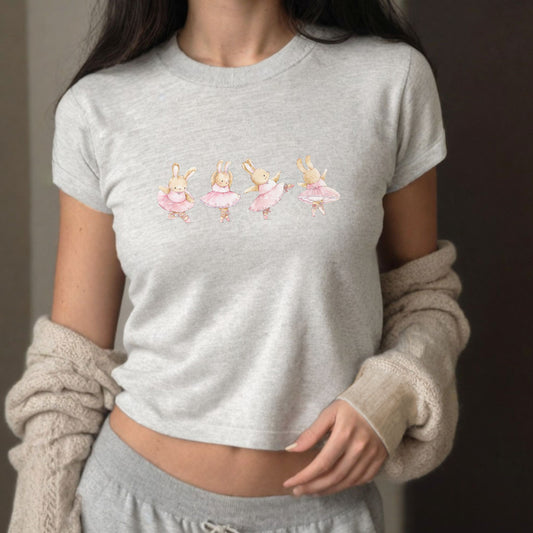 Coquette Dancing Ballerina Bunnies y2k Baby Tee Shirt